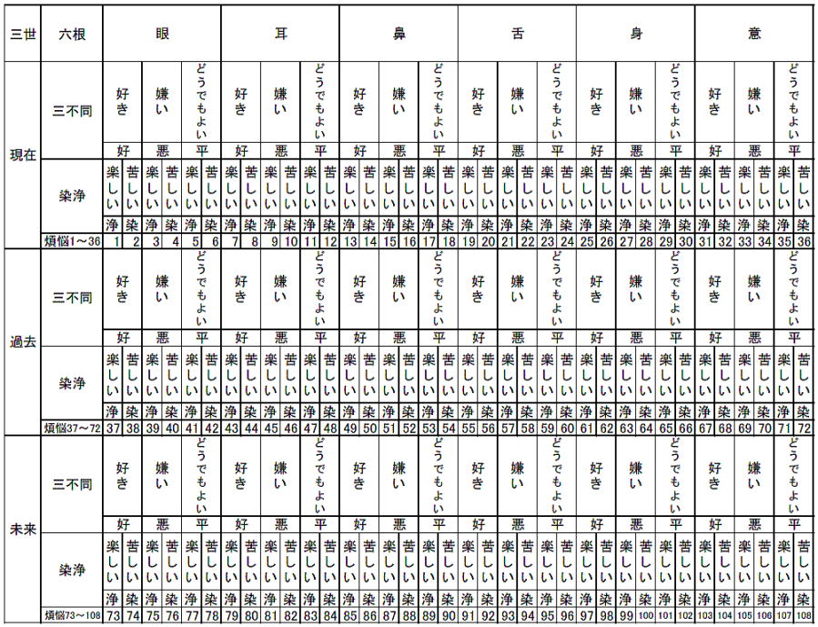 108煩悩の一覧を探したら無かったので作りました。それが上の表です。